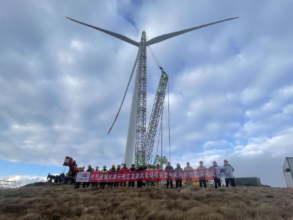 巨龙梁风电项目(一期)工程位于云南昆明市寻甸县,海拔3300多米,项目动态总投资约5.6亿元,总装机容量100兆瓦,主要为13台6.7兆瓦和2台6.45兆瓦的风电机组、15 台箱式变压器与35kV集电线路及升压站扩建,以及15个风机安装平台、场内施工道路及改扩建道路、渣场施工。项目建成后年发电量为29550万千瓦时,年平均发电收入7695万元。预计每年可节约标准煤9.11万吨,减少二氧化碳排放24.59万吨,减少二氧化硫排放47.28吨。巨龙梁风电项目既有效利用了当地的风能资源,提高了区域供电能力,又对减少大气污染发挥了积极作用,具有明显的经济效益和社会效益,将为实现“双碳”目标和云南打造绿色能源强省作出贡献。