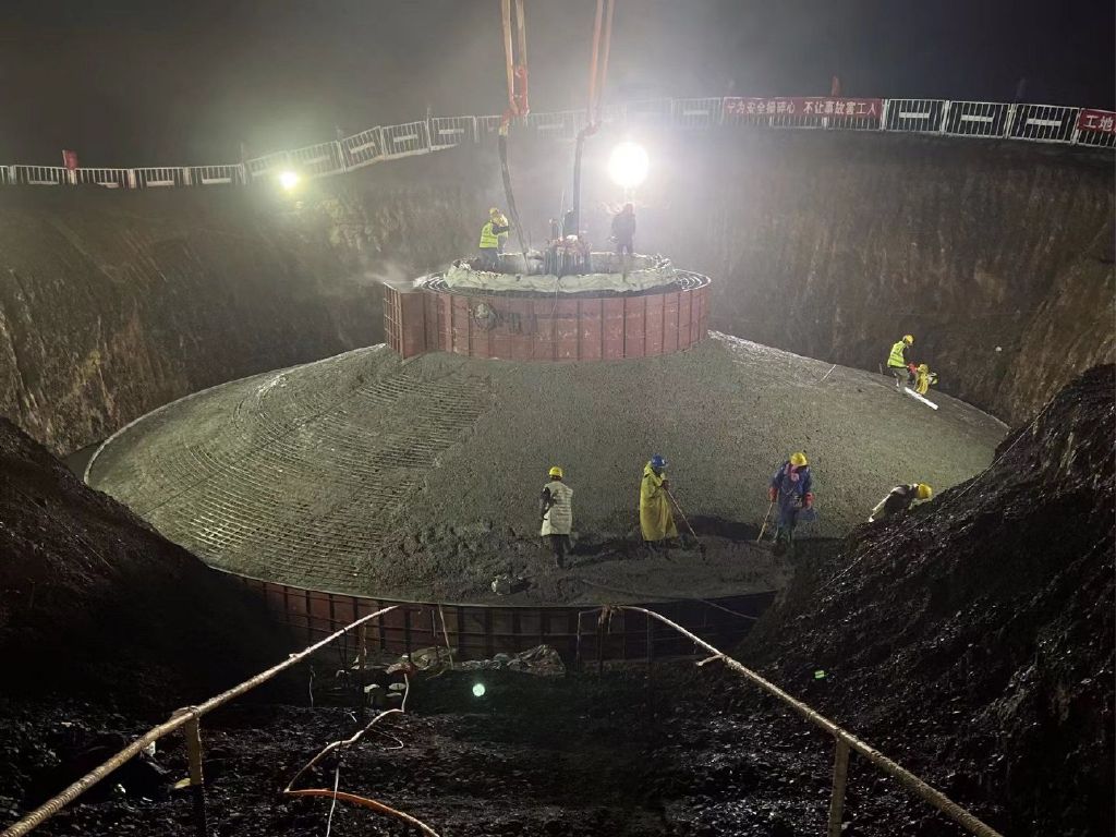 自2022年9月下旬项目正式开工以来,如何在短短的三个月内完成首台风机发电便成了困扰着巨龙梁项目部的最大难题。高原作业,不仅要忍受严寒、大风、大雾、缺氧等恶劣的自然环境,还要克服道路崎岖、迷路、丢失信号等威胁到生命安全的困难。面对时间紧、任务重、环境恶劣等诸多难题,项目部从施工策划、组织设计、资源分配等多方面入手,从基坑开挖、锚栓安装到混凝土浇筑、风机吊装,总结每一次施工经验,紧追工程进度,压缩作业时间,终于在12月20日完成了首台风机吊装,2023年前完成首台机组投产发电的目标可谓近在咫尺。