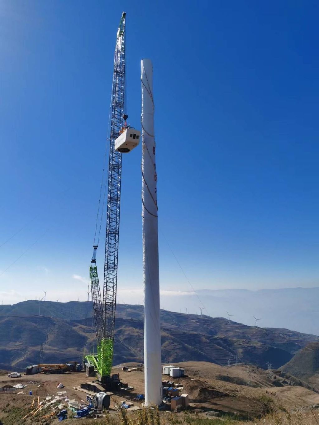 据悉,首台风机单机容量6.7兆瓦,轮毂高度115米、相当于30多层楼高,叶片长度93米, 轮机舱重量138吨,叶轮直径191米,是目前国内单机容量最大、塔筒高度最高、叶轮直径最长的高原山地风机。