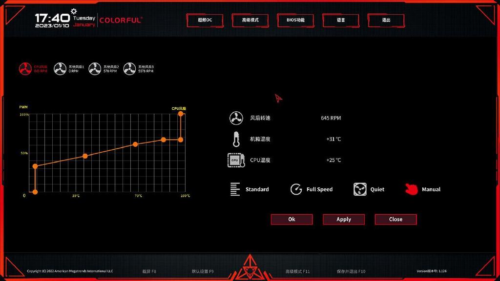 在测试前先说一下主板的散热风扇设置,由于电脑经常在夜间跑运算,因此个人注重的静音效果,同时考虑到当前的气温与处理器发热情况,在主板中手动把散热风扇的转速拉低,让处理器在满载时维持在合适温度以及尽可能维持足够静音。