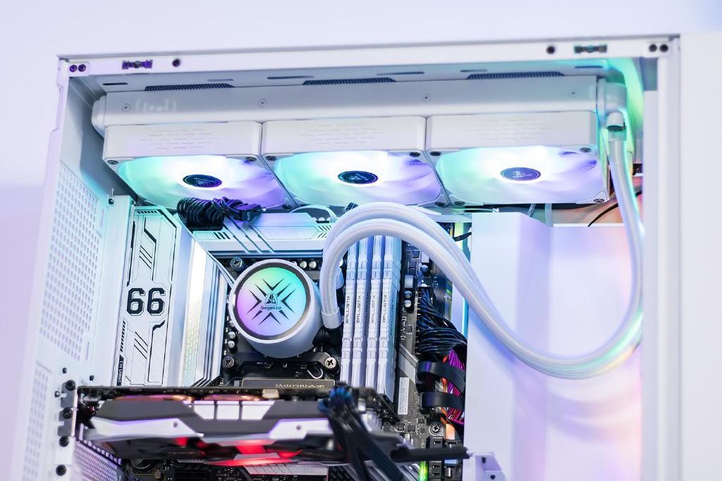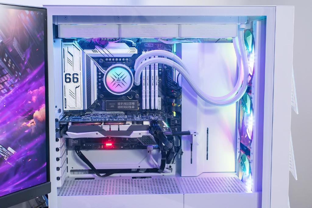 假如想要压制i7或i9级别的处理器,风冷式散热器一般需要采用双塔双风扇结构设计,导致自身体积尺寸相当的大,在一定程度上会遮挡内存条插槽或者固态硬盘接口,对于带RGB灯效马甲条的影响较明显,同时需要考虑内存条的高度兼容性。