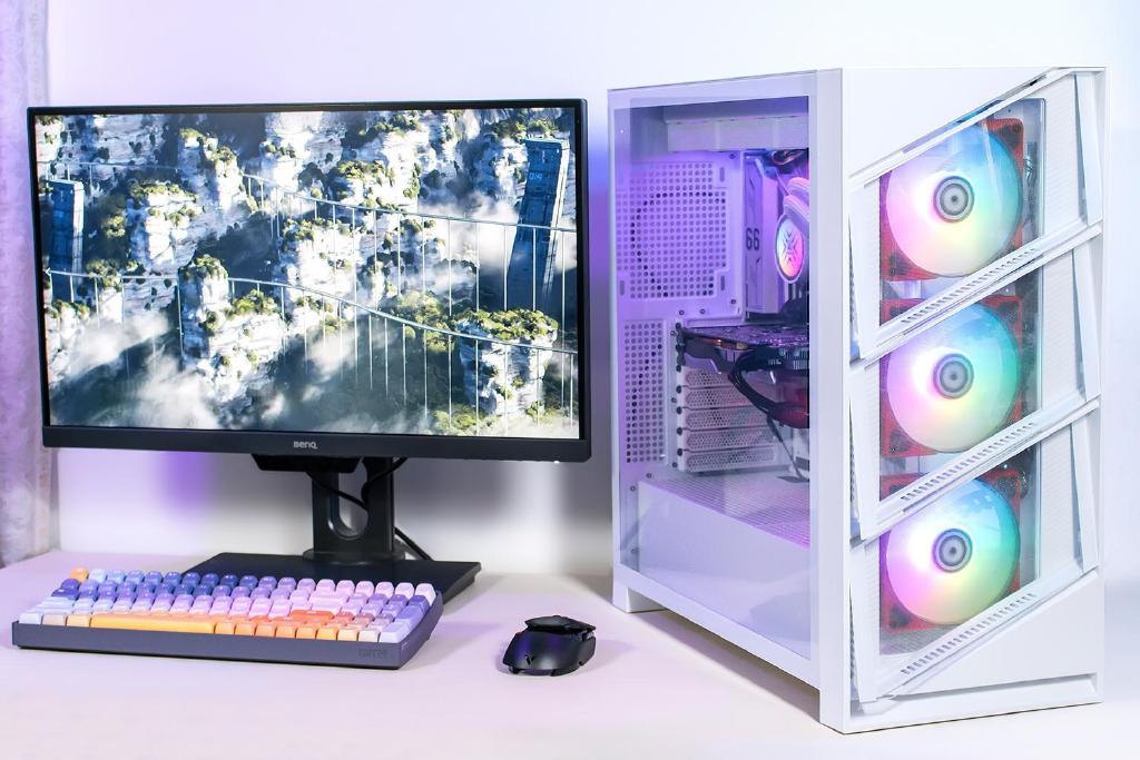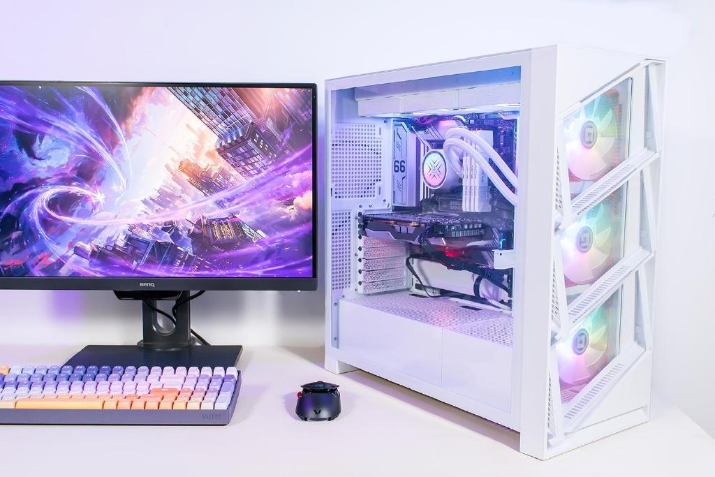 机箱与散热器对外观感知具有明显的影响,原本是使用双塔双风扇结构的风冷散热器,搭配一个全黑的百元级侧透机箱,实际的散热效果质感什么的先不去说,逐渐觉得原来的黑色机箱无法满足审美,完全没有任何动态灯光效果,在视觉上显得过于寡淡,也让那熏黑的侧透玻璃失去意义。为了解决这些情况只能对机箱与散热器进行升级,更好的适应白色的桌面风格,同时提高散热效能降低硬件的温度,本次使用鑫谷昆仑御风机箱搭配鑫谷冰霜360 ARGB散热器,让桌面焕然一新,这机箱与散热器的配置和颜值都非常不错,机箱造型简约时尚又细节到位,前面板和侧板采用钢化玻璃透明设计,同时兼顾安装兼容性和外观颜值,接下来聊一聊具体装机效果如何。