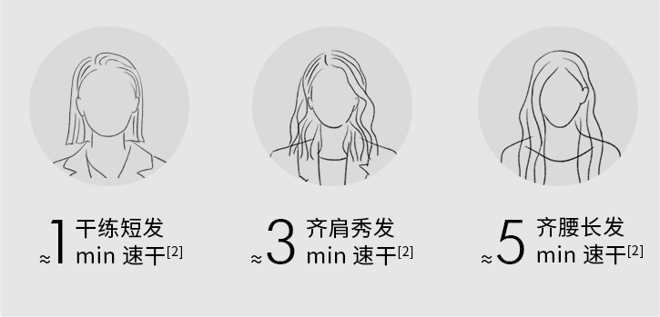 而科西吹风机的高风速,约1分钟吹干短发,约3分钟吹干中长发,约5分钟吹干长发!