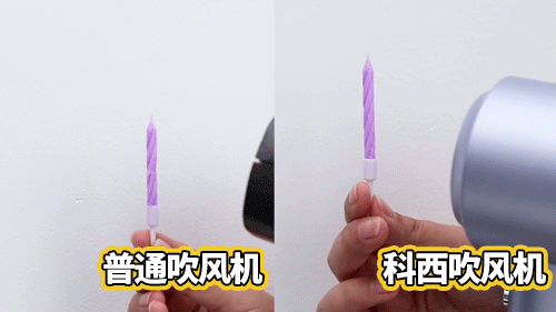 我们用吹风机吹蜡烛:科西吹风机风温低,蜡烛没有啥变化;普通吹风机还没吹一会,蜡烛就化了!