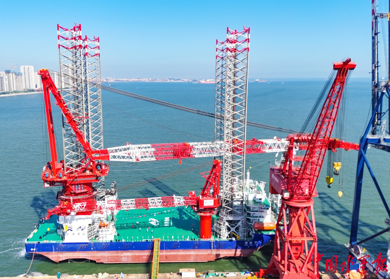 据了解,“港航平5”平台船长135米,宽50米,最大作业水深70米,最大起重能力1800吨,正式投用后预计一年可安装海上风机100台以上。