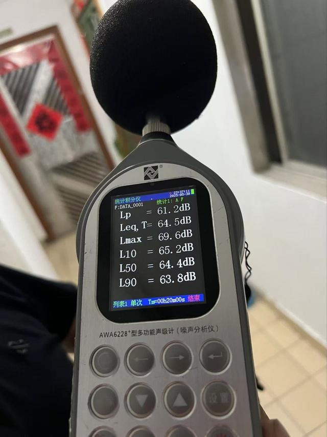 今年夏天,在居民努力争取之后,终于有第三方机构上门进行了噪声测试。在居民出示的测试结果上,记者看到,测试时间为夜间23:30分左右,显示噪声分贝值都在61-69区间内,远远超过了夜间不得超过50分贝的限值。然而,在噪声分贝测试完毕之后,居民满怀希望等待着下一步动作,却迟迟没有结果。